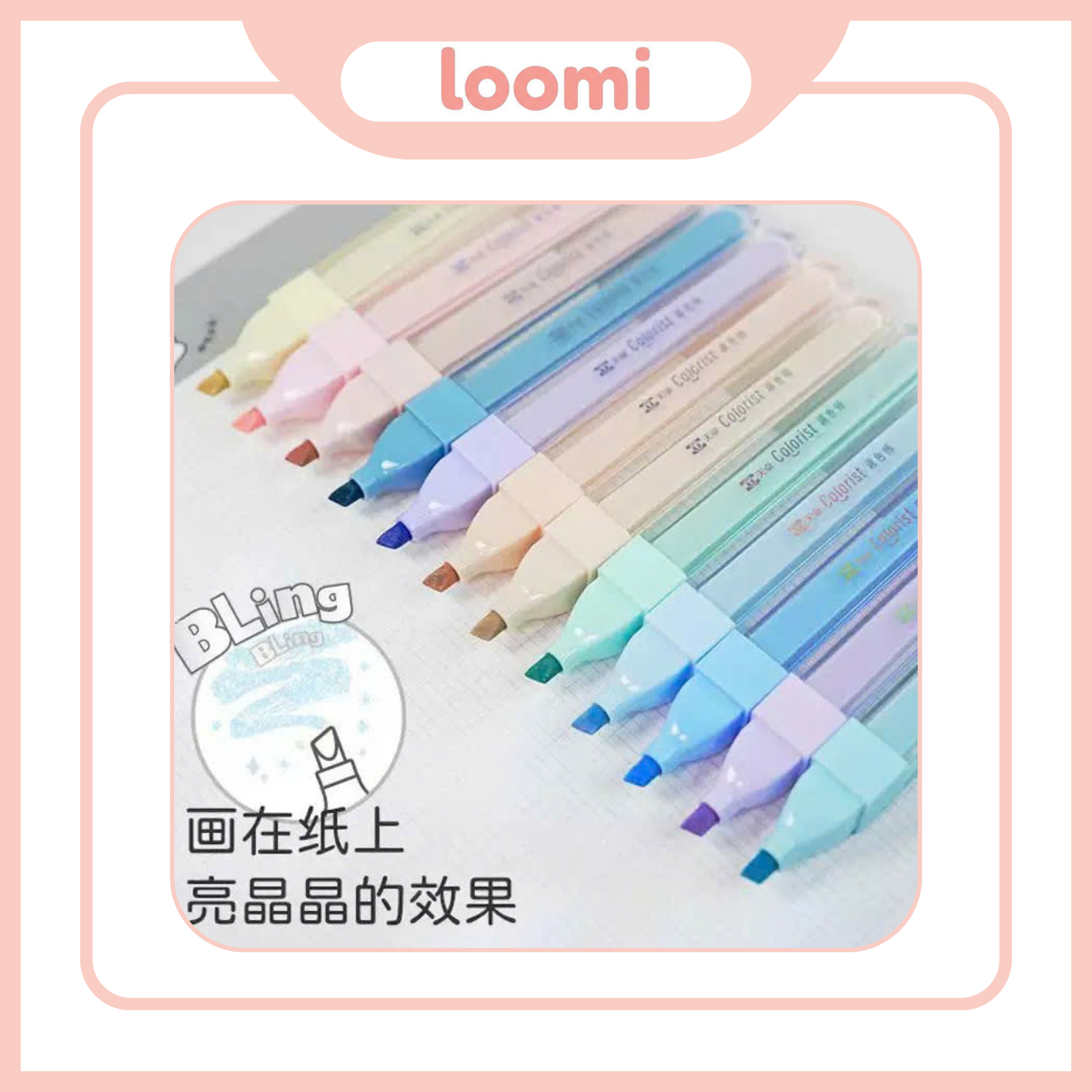Với sự kết hợp giữa màu sắc dịu nhẹ và hiệu ứng ánh nhũ nổi bật, Bling Highlighter Pen không chỉ là một chiếc bút highlight mà còn là một món phụ kiện giúp nâng tầm trải nghiệm ghi chép và sáng tạo mỗi ngày.